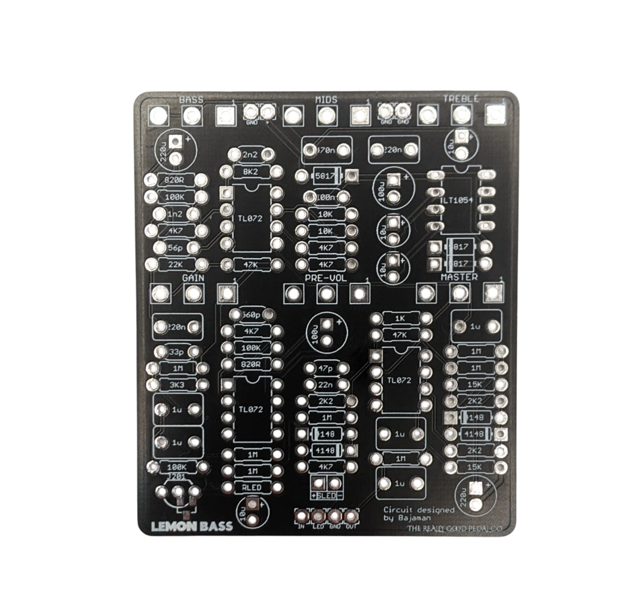 The Lemon Bass started life as a PCBGuitarMania PCB based on bajaman's AD200B preamp schematic.