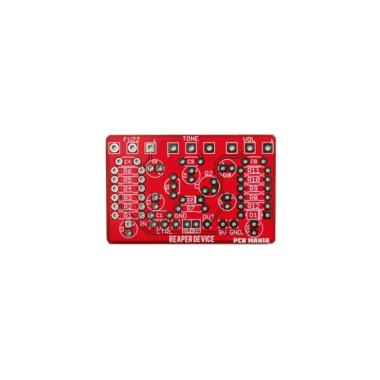 The Reaper Device is a vintage-style fuzz device with a unique design in which the tone control has been modified into a BMP tone stack in addition to the pair of germanium transistors simplified into a single high gain silicon transistor MPSA18.