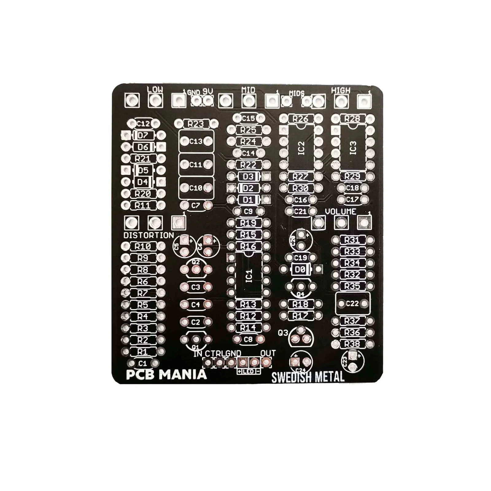 We actually do not understand why the Boss MH2 ™ even has knobs, but we added one more to make it more useful. I mean, you crank them all and get the sound 1990 metal tone from Sweden. Instant Entombed buzzsaw tones just by pushing the footswitch down. But still, giving the EQ a third band makes it easier to use it with all kinds of amps. Make sure you check the footprint of the 2.2uf you buy. They can cause some headaches if you source too big ones.