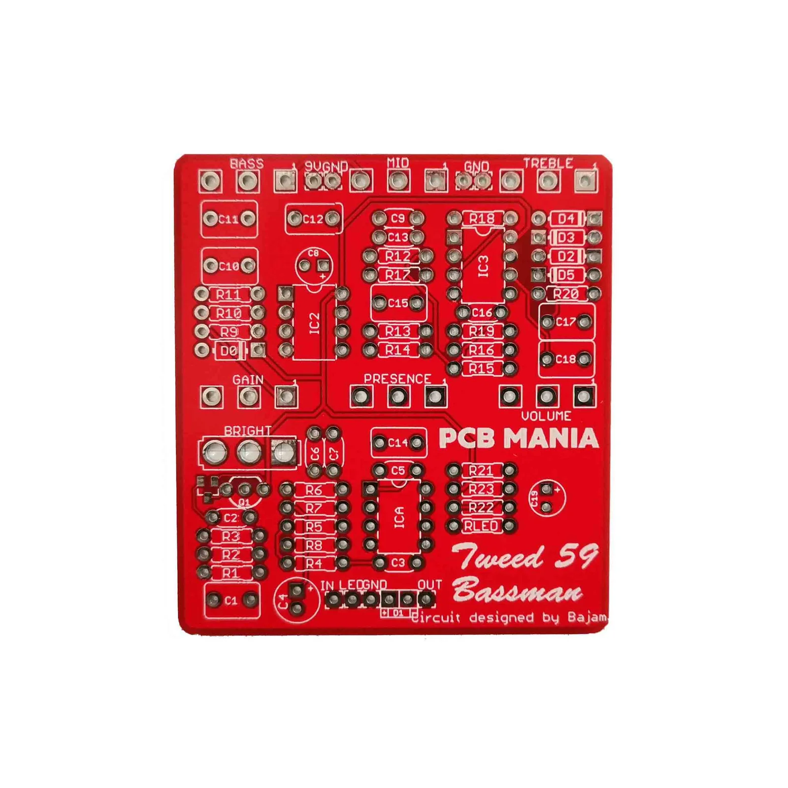 The Fender 1959 Bassman ™ was originally designed (as the name says) to be a Fender’s first dedicated Bass Amplifier that delivers a lot of volume without getting distorted. Over the year, guitar players started to fall in love with it as well because of its massive headroom that provides you with the famous F-cleans, and that’s one of the reasons it’s being built with a short time out from 1951 till now. Bajaman did a great job emulating this amplifier’s preamp, and we made a pcb for you to join the party.