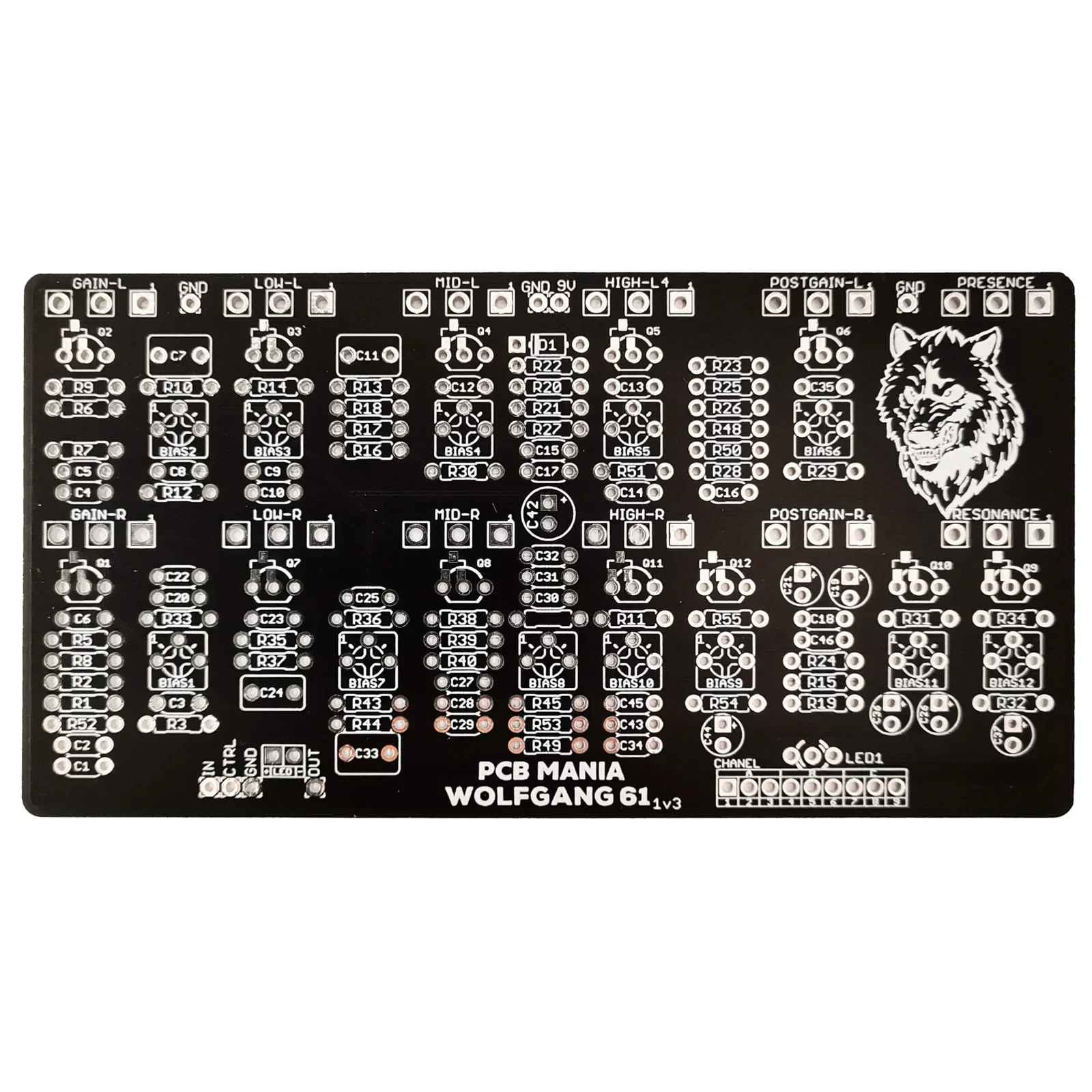 Wolfgang 61 is the Dual Channel adaptation of the Peavey 6150 preamp. It is powered by J201 transistors and includes Full EQ for each channel plus a common control for Presence and Resonance.